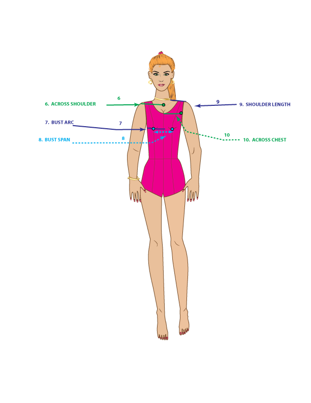 Okay, now that you know how to take accurate bodice measurements – it’s back to the drawing board. First, be sure you use a good tape measure, wear tight-fitting clothes or a leotard, and have someone assist you.