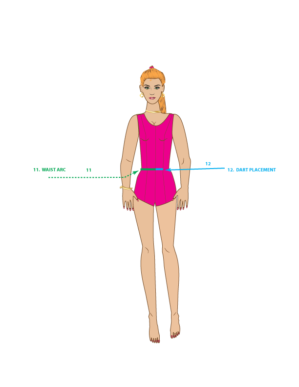11. WAIST ARC – Measure from the center front waist to