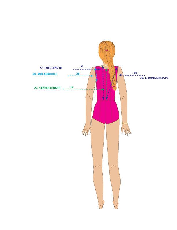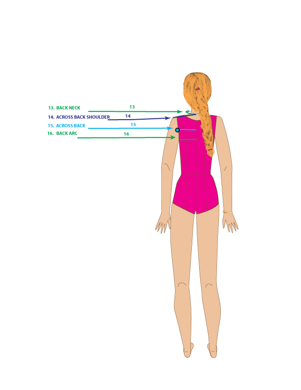 15. ACROSS BACK – Measure from the center back to 1-inch above mid-armhole