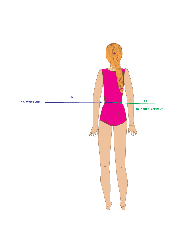 17. WAIST ARC – Measure from the center back waist to the side waist