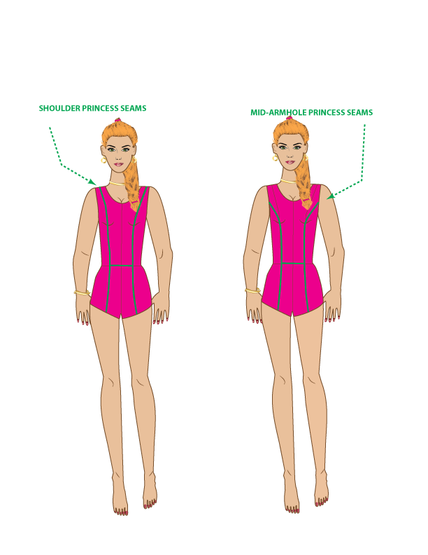 2. Mid-Armhole Princess Seam – starts from the mid-armhole curving down to the waist.