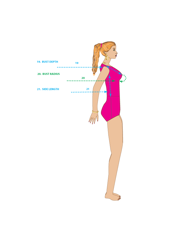 20. BUST RADIUS – Measure from the bust point around the bust mound, ending at the rib below