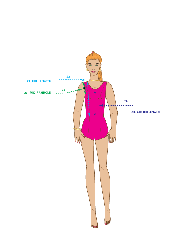 22. FULL LENGTH – Measure from the shoulder/neck to the waist, parallel with the center front line