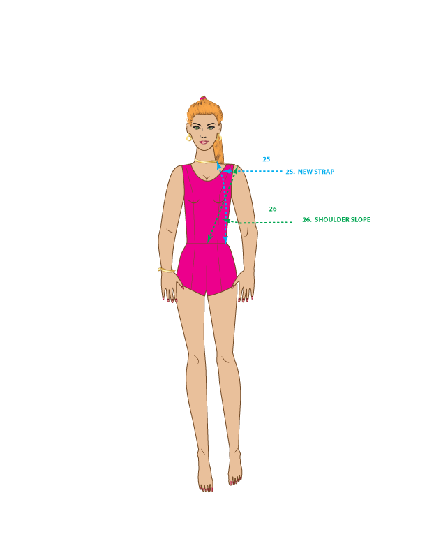 23. MID-ARMHOLE – Measure from the shoulder tip down to the center of the armpit, then divide that number in half