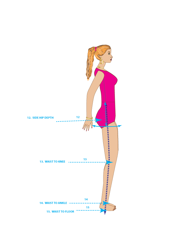 15. WAIST TO FLOOR – Measure from the side waist to the floor