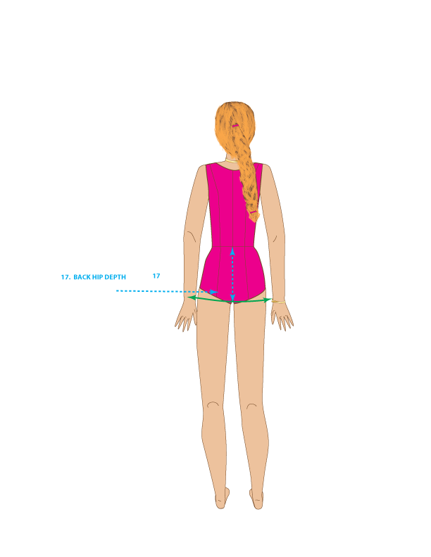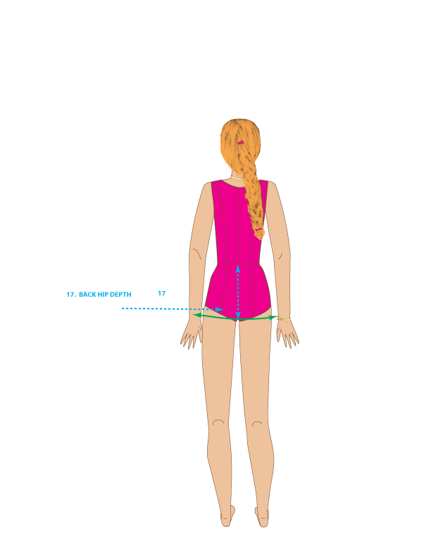 17. BACK HIP DEPTH – Measure from the center back waist down to the hip line