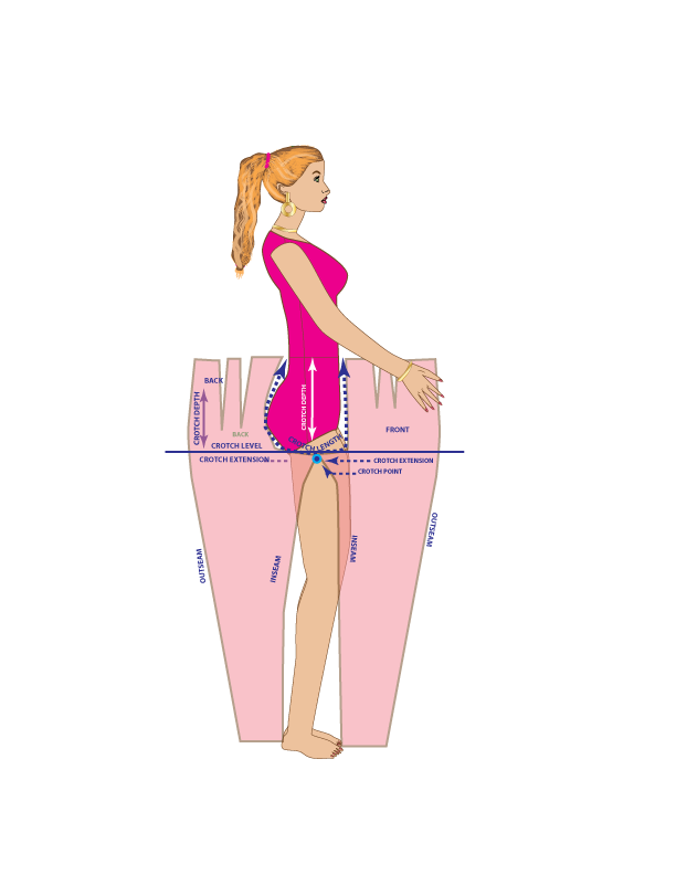 The crotch is an area where many drafters and sewists run into problems. If the measurements for the crotch area are inaccurate or skipped, you will have fit issues, such as “camel toe” in the crotch area.